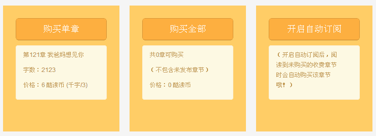 戳完V字后,就跳转到下面的页面了,可以单章购买和全部购买(全部购买的话一次性搞定,可以让你爽歪歪~( ̄▽ ̄~)(~ ̄▽ ̄)~),也可以开启自动订阅。这些都是随菇凉和帅锅们的喜欢就好呢。