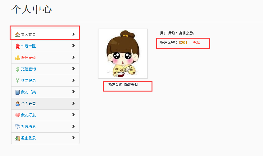 2.个人中心专区首页就可以看到咱们账户充值的余额和交易的记录、还可以在个人设置里面修改头像等。