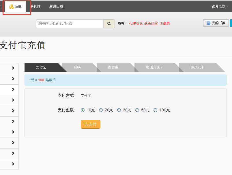 支付宝和网银充值兑换比率最划算 10块钱兑换1000酷读币,最低10元起哦!