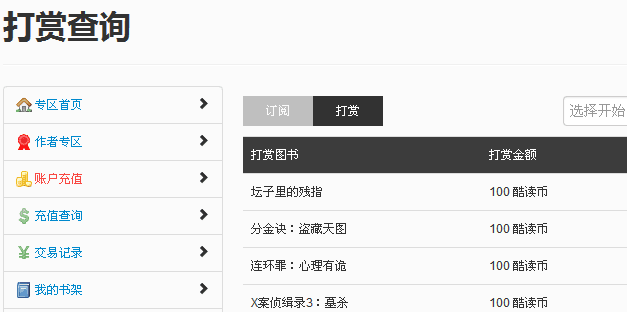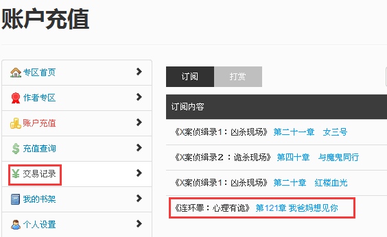 4.下面说说交易记录吧,这里面有咱小伙伴们订阅和打赏作品的记录。